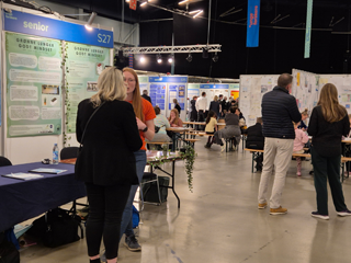 会場内には、書類選考→準決勝を勝ち抜いてきた全国のジュニア(中学生)とシニア(高校生)チームそれぞれ50、計100チームのブースが整然と並んでいます。また科学分野の公的機関や民間企業ブースも若者たちのブースに交ざって25ほど設置されています。参加を申し込んだ入場者(その多くはファイナリストの家族や学友、無料)は、会場内を自由に歩きまわり、面白そうなプロジェクトを見つけると、立ち止まってそのブースの「若き科学者」から説明を聞いたり、質問したり、和やかな対話が生まれます。